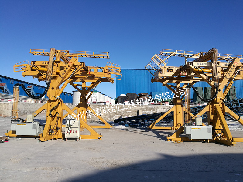 錦州華夏聯(lián)創(chuàng)工程機(jī)械有限公司生產(chǎn)的KFT系列集裝箱翻轉(zhuǎn)機(jī),可拆解分體結(jié)構(gòu),各部件由型鋼和鋼板組合焊接而成,部件間采用鋼結(jié)構(gòu)高強(qiáng)度螺栓。法蘭連接,具有優(yōu)異的承載能力和穩(wěn)定性。
