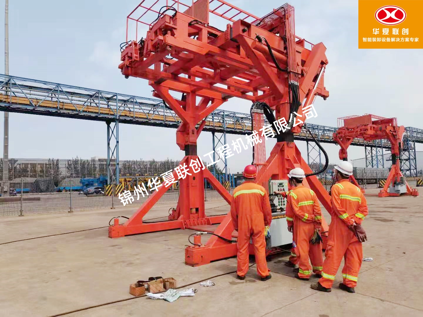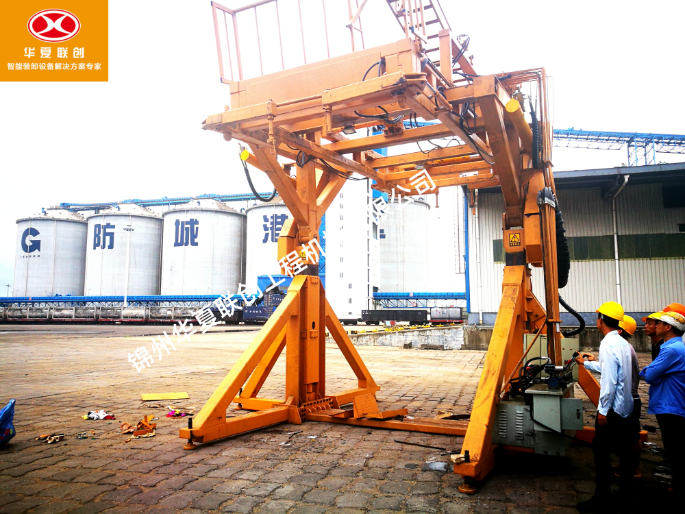 華夏聯(lián)創(chuàng)牌集裝箱翻轉(zhuǎn)機(jī)節(jié)能、高效、安全、智能、舒適、可靠,廣泛運(yùn)用于倉儲物流、礦山、工程、糧庫、港口碼頭等領(lǐng)域,可裝載糧食、塑料碎片、金屬碎片、礦石、煤焦等多種散裝物料。本品為全液壓結(jié)構(gòu),操作方便,適合20英尺集裝箱裝箱、卸箱,裝箱速度快,作業(yè)成本低,使散貨裝箱變得更簡單、輕松、快捷。以電機(jī)為動力,電機(jī)功率18.5千瓦,具有噪音低,振動小特點。采用國內(nèi)知名品牌液壓油缸,加粗缸徑,起重量大,起升及翻轉(zhuǎn)平穩(wěn)、安全等特點。