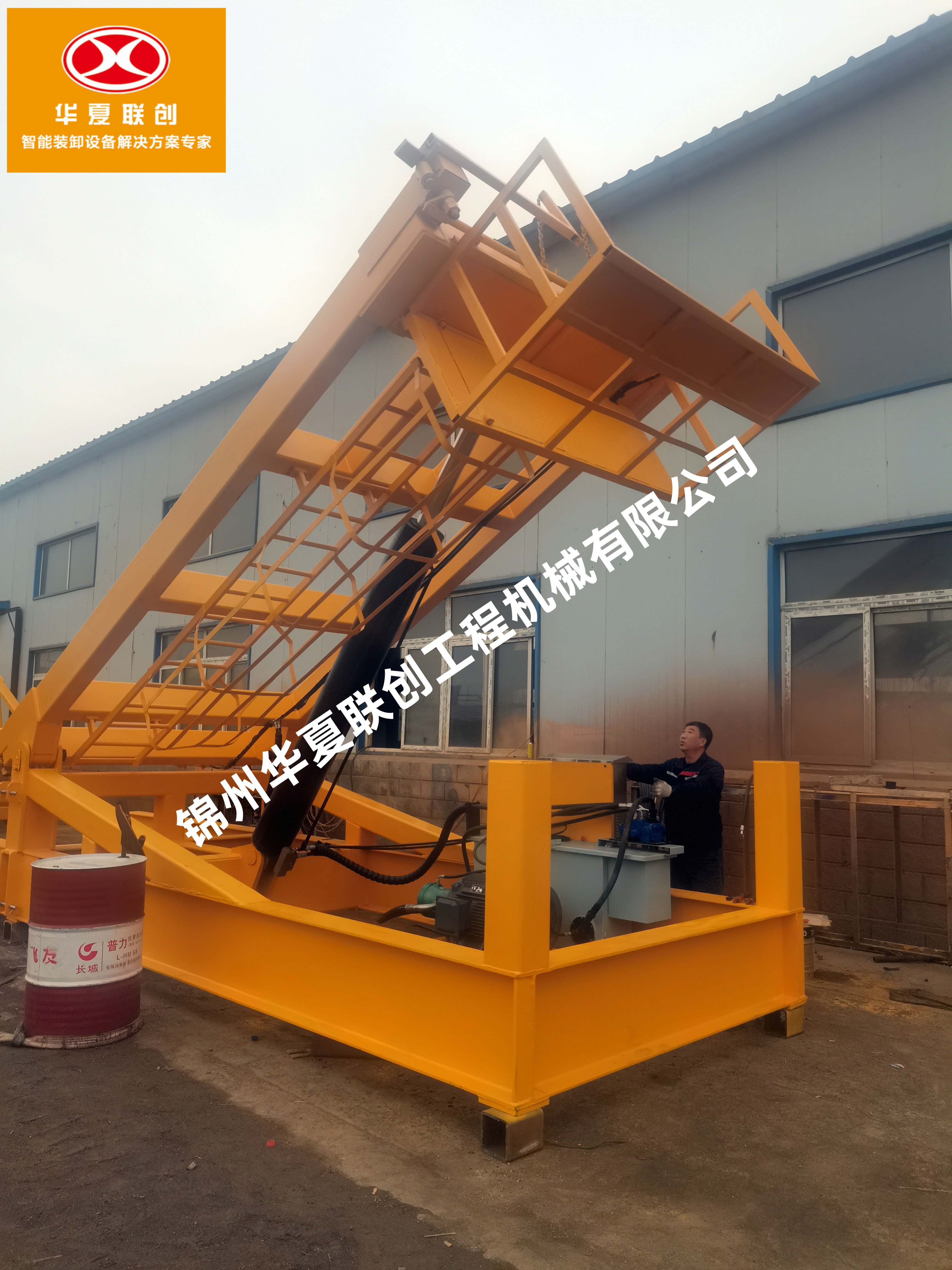 HXFT-40系列集裝箱翻轉(zhuǎn)平臺(tái)是我公司針對(duì)20英尺集裝箱散料裝箱研發(fā)的集裝箱翻轉(zhuǎn)作業(yè)的專用設(shè)備。各部件均由優(yōu)質(zhì)的型鋼和鋼板組合焊接而成,部件間采用鋼結(jié)構(gòu)高強(qiáng)度螺栓、法蘭連接,具有較好的承載能力和穩(wěn)定性。
